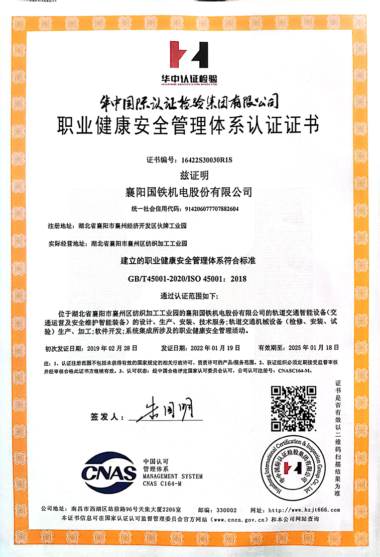 職業(yè)健康安全管理體系認證證書