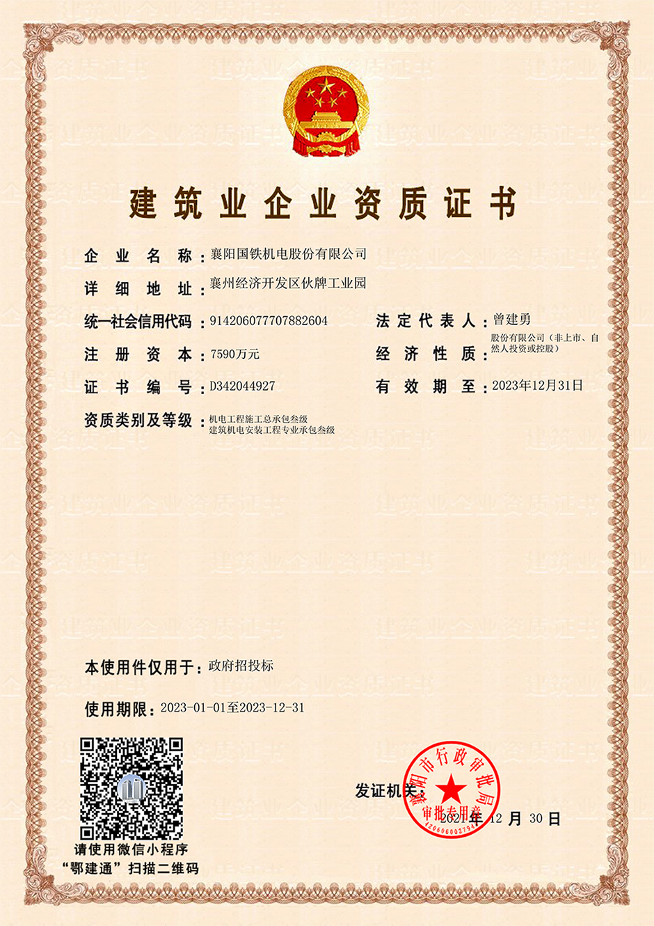 建筑企業(yè)資質(zhì)證書