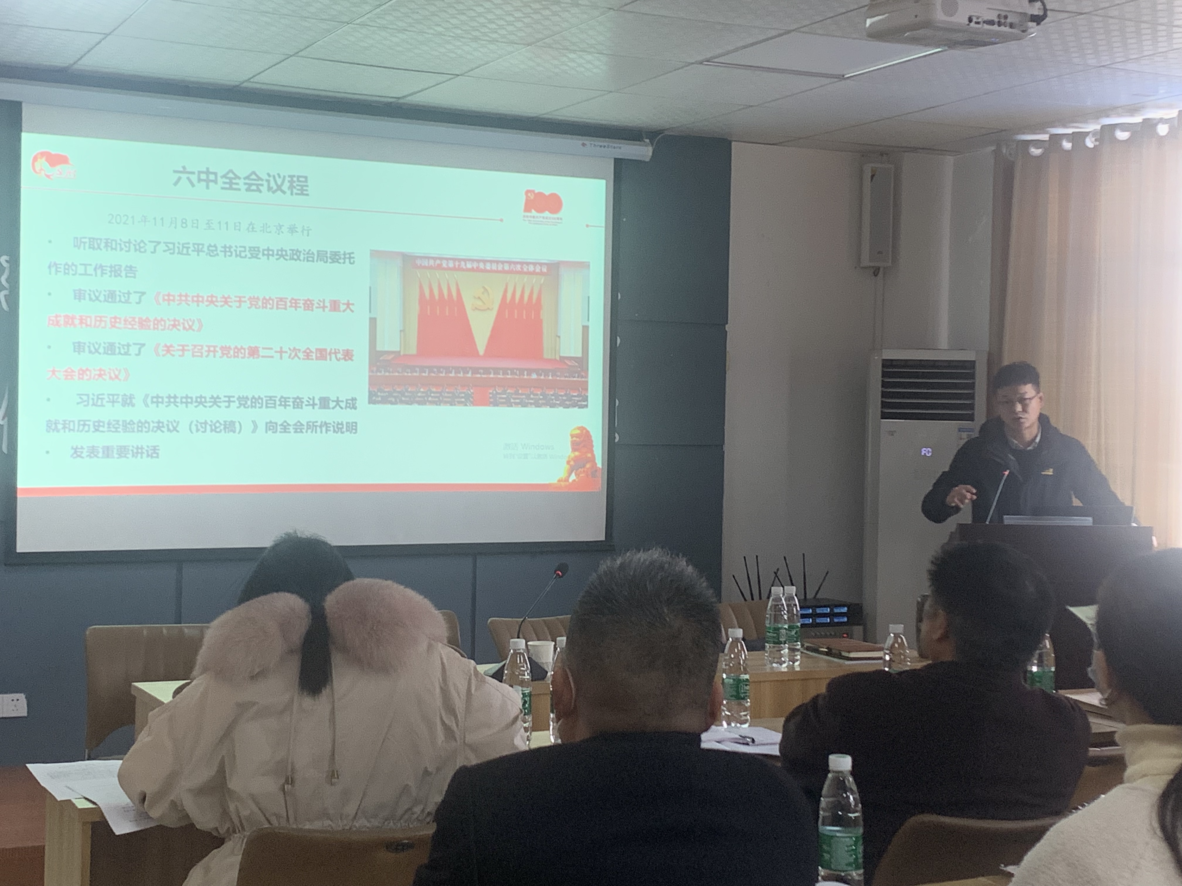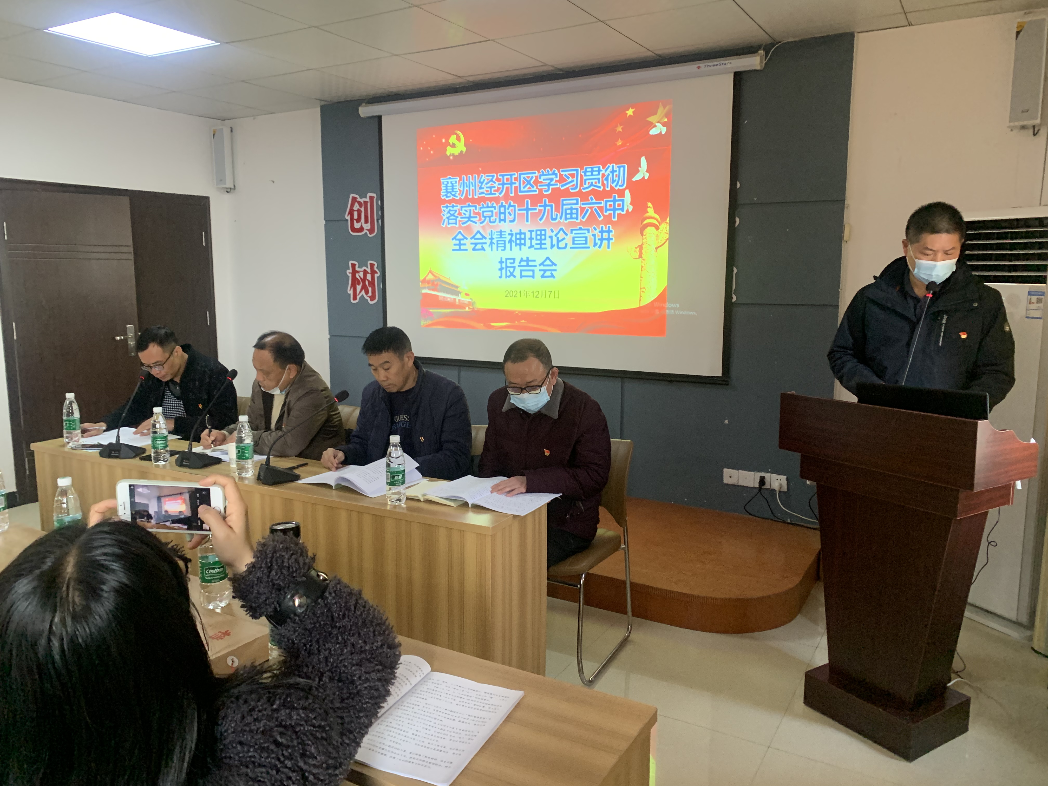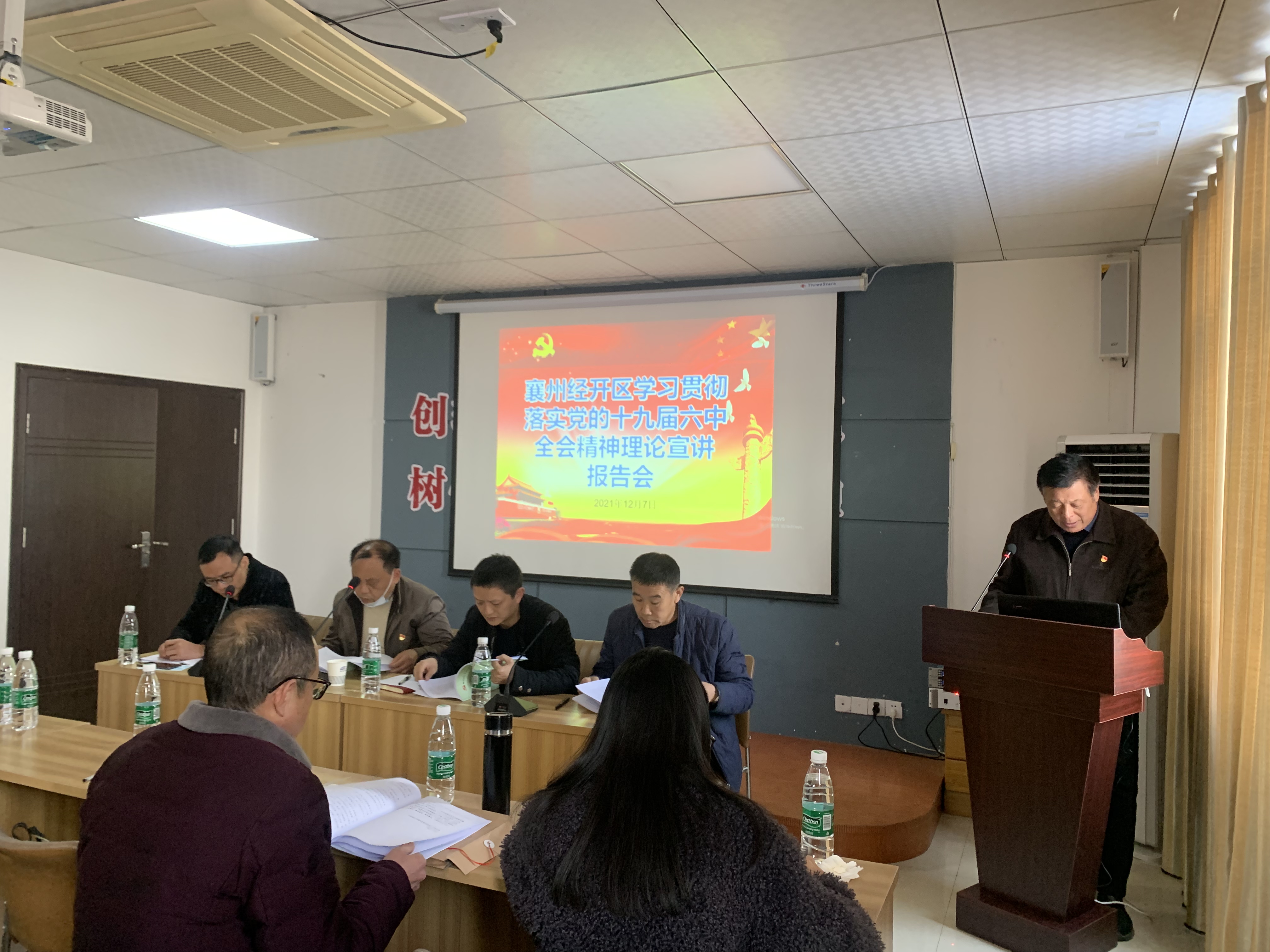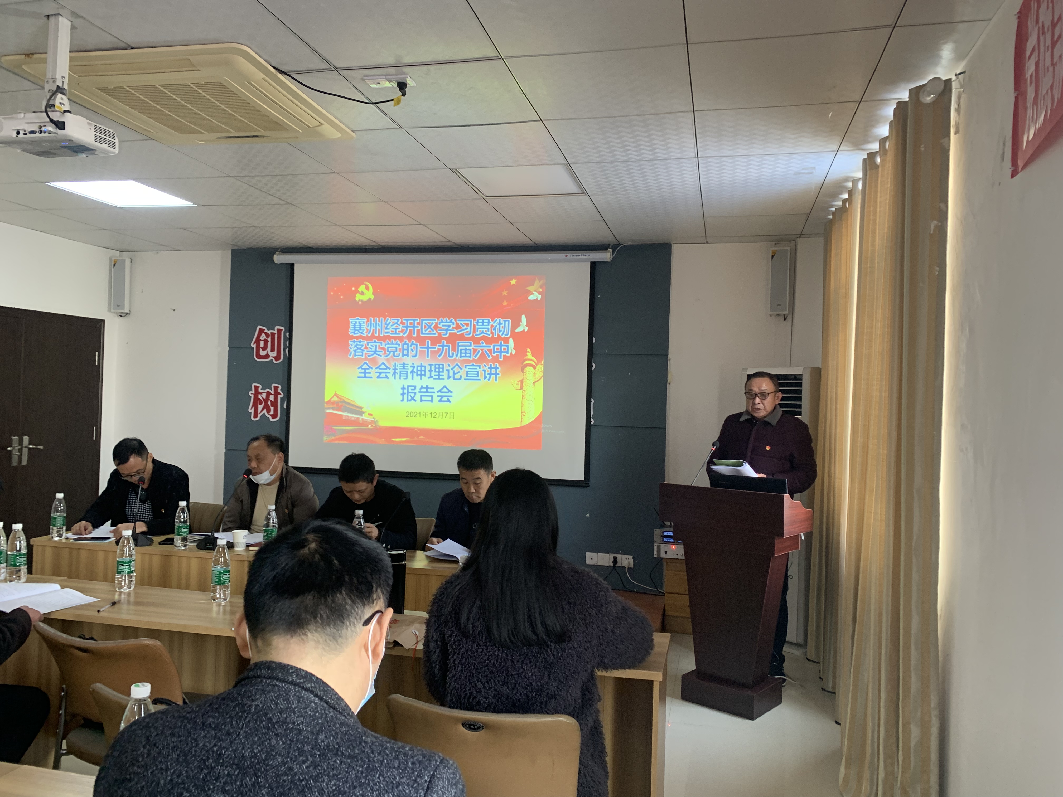 會議主要任務是認真學習黨的十九屆六中全會精神,總結2021年黨建工作成績,安排年末和2022年園區黨建工作。會議結束后,緊接著請襄州區委黨校知名講師王拓進老師講授黨課。