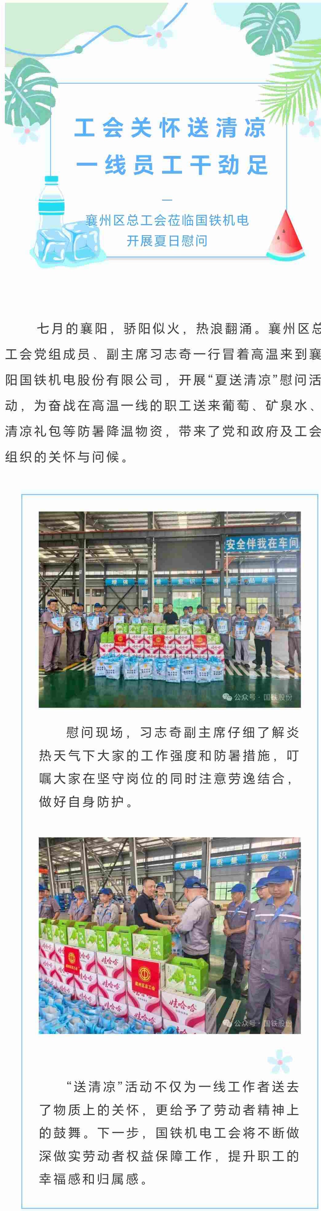夏日送清涼 關愛沁人心!襄州區總工會蒞臨國鐵機電開展夏日慰問