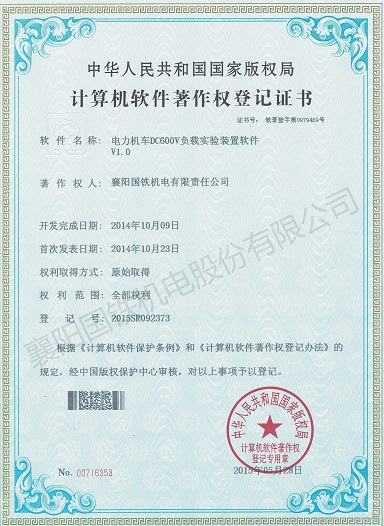 電力機車DC600V負載實驗裝置軟件(軟件著作權(quán)證書)